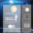 【Wireless Remote】 led puck lights with 1 remote control(3Packs) with control modes: turn on/off with the remote control or manually press the dome button. The remote control distance range: 16 feet ~ 21 feet, which is very convenient and easy to use. 【Dimmable Light and 13 color RGB】Battery Powered Puck Lights has 30 lumens, bright enough. Press the "-" and "+" buttons on the remote to get the exact brightness you want (5 levels of adjustment).13 color options: warm white and 12 preset colors. smooth, cycle through 12 rainbow colors; Fade in and out and slowly change the brightness of a color. 【Smart Timekeeping】Upgraded led push lights with Wireless Remote can be set to turn off after 30 or 60 minutes, which is convenient for energy saving. It can intimately accompany babies who are affected by darkness. Reboot from the indicator when it was last turned off. 【Widely Used】This indoor led night lights are widely used in bedrooms, baby rooms, counters, kitchens, garages,basements, closets, stairs, corridors, cabinets, etc. 【Easy Installation】Each wireless LED closet light is powered by 3 AA batteries (batteries not included), using original tape (including 3) for quick installation. When the light brightness starts to weaken or the remote control is not sensitive enough, just unscrew the light from the base and insert a new battery to replace it. 【Note】 When the light dims, changes color, doesn't light up or flickers a bit, remote control malfunctions these situations, usually it's dead, just change the batteries to solve the problem.
