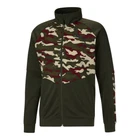 Contrast Blocked Camouflage Full Zip Jacket Product Details 100% Polyester Full zip Ribbed cuff/hem Stitched camouflage-blocking PUMA Cat Logo print on left chest The zip front track jacket features the Puma cat logo on the front and insets of camo color blocking matching pants available. Additional Details Color: Green Occasion: Casual Gender: Mens Age: Adult Brand: Puma