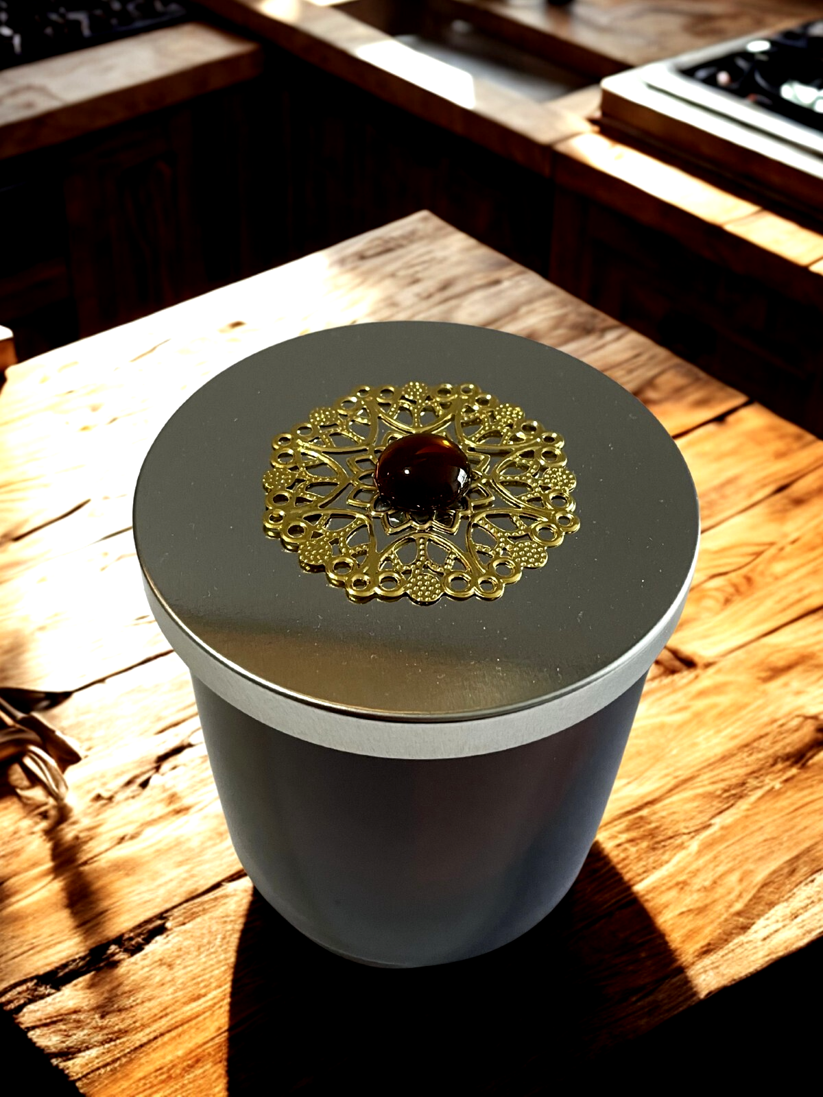 A warm and inviting blend that captures the essence of fresh baked goodness. It features rich notes of pumpkin intertwined with spicy cinnamon and clove, creating a nostalgic and comforting scent. The fragrance also includes fresh orange and a hint of almond to sweeten the creamy custard signature of this all-time favorite. Handmade highly scented soy wax candle with all natural ingredients, no artificial fragrances or dyes. All candles are made to order. Burn time is more than 40 hours. Comes in a beautiful amber glass candle jar with a silver metal decorated lid great for any decor. Candle measures 3 1/4 inch diameter and is 3 3/4 inches tall with lid. Comes in a stylish black tube container as a gift box. Made with a wood wick that burns cleaner and longer, sounds like a crackling fire. Please use caution when burning candle, keep out of reach of children and away from drafts. After burning, trim wick to 1/4 inch. If you have and problems or questions, please contact me via Ebay, Thank you.