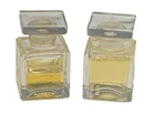 A delightful pair of vintage Pure Tiffany Eau De Parfum mini bottles. These exquisite 0.3 fl oz bottles capture the elegance and nostalgia of a bygone era, offering a glimpse into timeless luxury. • Set of 2 mini bottles • 0.3 fl oz / 9 ml each • Eau de Parfum • Square glass bottles • Removable square stoppers Bottles show signs of wear; slight discoloration on stoppers. One bottle is full and the other is about 40% full - see photos One says Pure Tiffany on the bottom and the other does not.