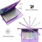 Keyboard Case for iPad 9th,7 Color Backlight Purple Product Details Package Dimensions: 11.22 x 8.23 x 1.26 inches Item Weight: 2.09 pounds Manufacturer: GGH Language: English, English, English Country of Origin: China Item model number: A2602/A2604/A2603/A2605 Batteries: 1 Lithium Polymer batteries required. Brand: GGH Compatible Devices: For iPad 9th Gen 10.2-inch 2021, iPad 8th Gen 2020, iPad 7th Gen 2019, iPad Air 3rd Gen 2019, iPad Pro 10.5-inch 2017, (Compatible model:A2602/A2604/A2603/A2605/A2270/A2428/A2429/A2430/A2197/A2200/A2198/A2152/A2123/A2153/A2154/A1701/A1709/A1852) For iPad 9th Gen 10.2-inch 2021, iPad 8th Gen 2020, iPad 7th Gen 2019, iPad Air 3rd Gen 2019, iPad Pro 10.5-inch 2017, (Compatible model:A2602/A2604/A2603/A2605/A2270/A2428/A2429/A2430/A2197/A2200/A2198/A2152/A2123/A2153/A2154/A1701/A1709/A1852)For iPad 9th Gen 10.2-inch 2021, iPad 8th Gen 2020, iPad 7th Gen 2019, iPad Air 3rd Gen 2019, iPad Pro 10.5-inch 2017, (Compatible model:A2602/A2604/A2603/A2605/A2270/A2428/A2429/A2430/A2197/A2200/A2198/A2152/A2123/A2153/A2154/A1701/A1709/A1852) See more Connectivity Technology: Bluetooth Keyboard Description: Multi Functional Recommended Uses For Product: Office, Everyday Use, Personal, Student, Business Special Feature: 10 Color Backlit, Portable, 360° Rotatable, Rechargeable Bluetooth Keyboard, Apple Pencil Holder Color: Purple Number of Keys: 78 Keyboard backlighting color support: RGB Style: Classic 【Keyboard for iPad 9th Generation with 10 color backlight】The ipad 9th backlit keyboard is engineered for optimal light diffusion in any setting,10 color backlit with 2 brightness mode bring you different visual enjoyment and comfortable typing experience. Multiple colors give you the freedom to choose what you like. The ipad 9th keyboard case has a long battery life due to the lithium-ion battery that provides up to 96h with backlit off and 6h with backlit on of continuous operation 【Multi-Angle iPad 9th Generation Case】The ipad 9th Generation case rotates 360°Rotation and 180° Flip,offering multi-angle viewing. You can adjust the screen to any desired angle when you are watching videos, playing games or simply typing. This feature allows you to assume any posture or place your iPad anywhere you like without straining or being affected by reflections. At the same time, the ipad 9th keyboard case comes with pencil holder for apple pencil,so it won't get lost or in the way 【Auto Wake/Sleep & Precise Cutouts】The ipad 10.2-inch case has auto sleep/ wake up function, close the ipad case and automatically sleep the ipad, so it comes to life when you open the ipad case. Auto Sleep/ Wake up function can protect and extend your battery life.The ipad 9th keyboard case is reasonably well-spaced with concave keys and it enables to access all ports and buttons easily. This protective case will ensure your ipad 9th stays damage-free in the face of drops, knocks, or spills