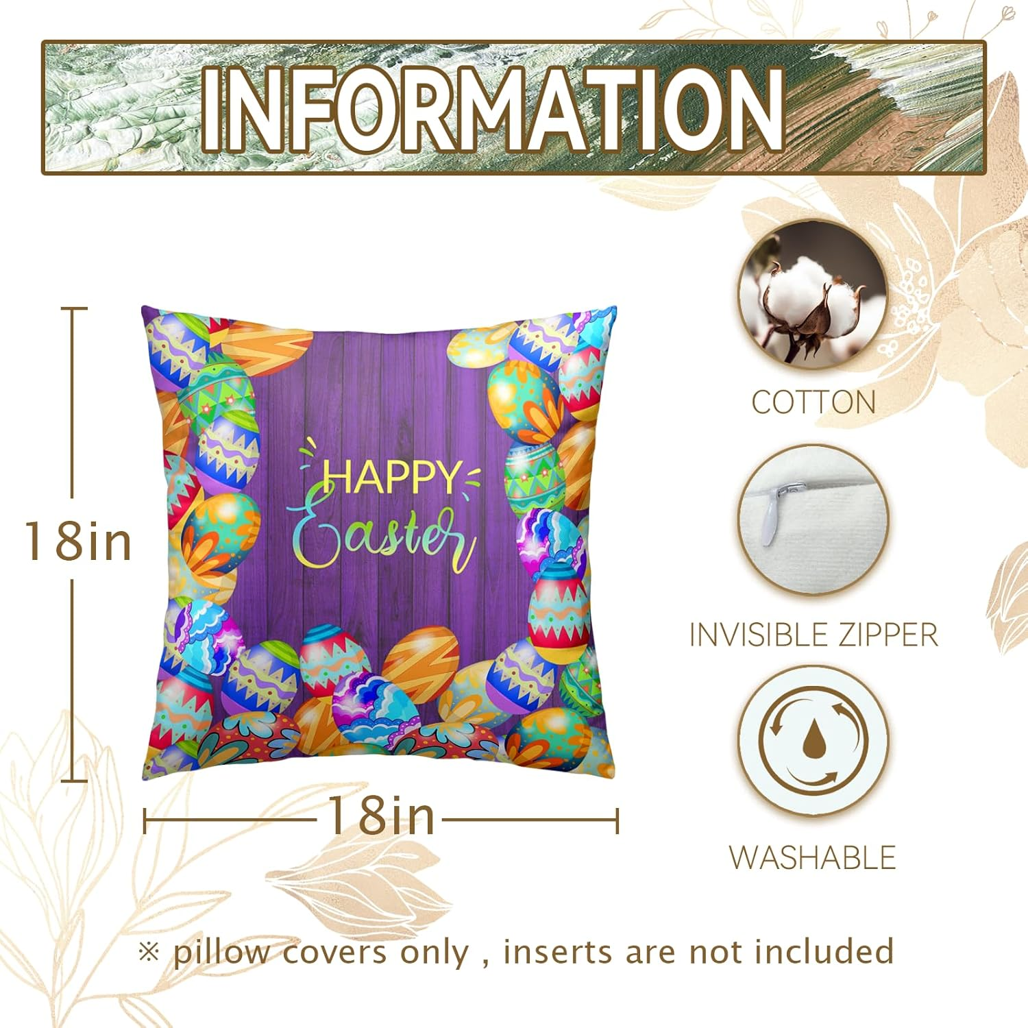 Store New Arrivals Add to Favorite View Feedback Contact Fast deliveries to the customer's home Quality customer service Sophia makes the customers happy! Happy Easter Pillow Cover Easter Day Throw Pillow Covers Purple Wood Grain Easter Egg Pillowcases 18X18 Inch Colorful Eggs Cotton Linen Decorations Cushion Cases Rustic Sofa Couch Bed Set of 2 Description Linen Package Include: Easter Eggs cushion cases set includes 2 pcs of 18x18 inch couch pillow covers (NO Pillow). It is easy to insert or remove the pillow core to replace the pillowcase. All the easter decor throw pillow covers have a hidden zipper. Easy to clean and wash, and not easy to damage. Durable Material: The happy Easter pillowcase is made of durable high quality solid cotton linen material, nvironmentally friendly fabric, comfortable & soft touch, breathable, no fading or fraying issue, to provide you with a delicate and soft touch, so you can enjoy a comfortable pillow experience. Double Sided: Ours easter theme throw pillows for couch adopt advanced HD printing technology, which is able to make the throw pillows more vivid, realistic. The print on the farmhouse pillow is very clear and simple. Home Decoration: Place our easter eggs couch pillow covers in your home or office to add style and warmth to your space. Suitable for decorating living rooms, bedrooms, dormitories, porch swings, balconies, cars, offices, etc. Perfect Gift: These colorful easter egg pillow covers are ideal for your home decor, they will easily add color and personality to throw pillows on your sofa, bed or chair, injecting freshness and warmth into your space. These eggs pillowcases are also ideal gifts for family, relatives and friends during the spring or Easter. Cryfox is a comprehensive home textile company that integrates design, production, and sales. We always insist on creating our products with high-quality materials and craftsmanship, which provides you with a variety of styles, colors, high-quality products to meet your diverse needs. By decorating your home with our pillow covers, you will have a cozy living place and also fresh up your home. Happy Easter Eggs Throw Pillow Cover Product Details: Size: 18 x 18 in/45 cm x 45 cm (Please allow 1-3 mm manual measurement error.) Material: Linen Cotton Packing list: 2 pillow covers without inserts Design: Hidden zipper, double-sided graphic printing Cleaning Method: Hand wash or machine wash in cold water, low temperature, do not bleach and iron. *Pillow Cover only, No Insert or Filler Easy to Install: A.Open the pillow and let it fully fluffy. B.It is important to fold in half first. C.Fold in half to make it easier to fit into the case. D.Well-proportioned. E.Get it done. Application scenario: Our outdoor colorful easter egg pillow covers, not only can be used in daily home, such as sofa, bed, chair, living room, bedroom, patio, porch, but also in car, camping, cafe and other outdoor places.It is an excellent choice for your decorations. Lean or cuddle on this easter eggs rabbit pillow covers 18x18 and let the day's weariness escape you. Reminder: Due to the brightness of the light, the picture is slightly different from the actual product. If you have any questions, please feel free to contact us. We will do our best to solve any problems you may encounter. Item model number 1 Style easter Weave Type Linen Weave Number of Items 2 Pattern Print Country of Origin Italy Theme Easter Unit Count 2.0 Count Room Type Bedroom Batteries required No Product Dimensions 18"L x 18"W Material Linen Seasons Spring Closure Type Zipper Item Weight 7.7 ounces Is Euro Pillow Size No Special Feature Fade-Resistant, Warm Touch Color Purple Easter Pillowcase Shape Square Recommended Uses For Product Sofa, Bed, Chair, Living Room, Bedroom, Patio, Porch, Car, Camping, Cafe, Outdoor Places Fabric Type Linen Product Care Instructions Hand Wash or Machine Wash (Cold Water, No Bleach, No Iron) Size 18" x 18" (Pack of 2) ABOUT US We offer the best prices around on high quality products. Our E-store includes media such as books, movies, music and games while offering electronics, toys, sporting apparel, clothing, tools, general home, garden items and more. SHIPPING We are always working hard to ensure your package arrives as soon as possible. Please understand that some factors like weather, high postal traffic, and the performance of shipping companies are outside of our control. We offer free shipping to the lower 48 states and ship within 2 business days of payment, usually sooner. We do not accept P.O. Boxes. Please provide a physical address. For shipping outside of the continental USA, we only use eBay's Global Shipping Program. The item is shipped to KY and then sent to the rest of the world. International customers are responsible for all duties and taxes. Continue to 'check out' to calculate costs for shipping the item to your country. Messages regarding eBay's Global Shipping Program MUST be directed at eBay EXCLUSIVELY. RETURNS We offer a 30-Day Return Policy on items in which you are not completely satisfied with. You have the option of a full-refund or an exchange of the item. No returns are available on items shipped outside of the USA PAYMENT We accept PayPal. CONTACT US This page content is yet to come Please ad us to your favorite seller and visit again later Thank You CUSTOMER SATISFACTION We try our very best to make sure every customer is completely satisfied. If there's a problem, message us! We're happy to help. WE ACCEPT
