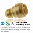 Package Includes:1" x 1/2" Pushfit Reducing Coupling (2 pcs) +1 Disconnection Clip Applicable Type:Pex Pipe Push To Connect fittings Push to connect to Copper, PE-RT, PEX, CPVC or brass pipe. Lead Free Brass: Pex Pipe Fittings High quality lead free bras, healthy and safe. Certification:Push in fititng Certified & Compliant ,UPC, ANSI/NSF-61, push fit fittings can withstand up to 200 PSI and 200°F.