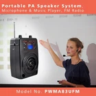 Pyle Portable PA System, Wireless Microphone Kit, Compact Stereo System, FM Radio, LCD Display, USB, Rechargeable Battery, includes Lavalier Microphone Headset, Outdoor Surround Sound (PWMA83UFM) PROJECT YOUR VOICE: Use the portable compact stereo system to make your voice heard with the included wireless headset and lavalier microphone. The built-in speakers project your voice or your music AUDIO STREAMING: Some of the compact portable stereo features include FM Radio with LCD display, USB and SD Memory Card Readers for MP3 digital audio playback, or use the Aux (3.5mm) input jack to connect audio from an external device FULL SYSTEM KIT: Includes a wireless headset, lavalier, belt-pack & power adapter. TRAVEL SIZE: System was designed to be handheld, along with a built-in rechargeable battery, making the system extra mobile & perfect for transportable sound power Extends the battery life up to 8 hours ADDITIONAL FEATURES: The portable pa speaker system upgrades include digital ID3 tag readout that displays song title and artist, EQ audio control, as well as repeat and random audio functions