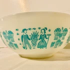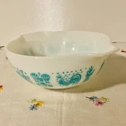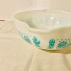 Pyrex Cinderella Turquoise White Reverse Amish Butterprint Mixing Bowl 443 2-1/2 Qt
