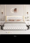 Introducing a stylish and functional bed frame with four storage drawers, perfect for any modern bedroom. This piece features a crystal button-tufted design and stainless gold trim for a sleek and sophisticated look. The bed frame is made of high-quality stainless material, ensuring durability and longevity. The tufted design adds texture and depth to the bed frame, while the faux leather upholstery fabric provides a comfortable and easy-to-clean surface. This bed frame is compatible with queen-sized mattresses and is ideal for adults. Add this bed frame to your bedroom to enhance its style and functionality.