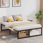 Large Underbed Storage Space: 16 inch high platform bed frames with 14 inch ample under bed perfect for storing sundries keeping your room well organized. Reinforce Support Frame: The head of bed frame with extra horizontal heavy duty steel leg more stable and durable, center bar support and heavy-duty steel slats to prevent the mattress from moving or sinking. No Box Spring Needed: Reliable metal slats provide better support and extend the life of your mattresses without a box spring. Noise-free design that you can enjoy whole night sleep. Anti-slip foot pads can reduce the friction to protect the floor. Reserved Holes for Headboard: Holes are reserved on the bed frames legs to attach the headboard. DIY your headboard to create your own style. Easy Assembly: Package includes clear instruction, all parts and needed tools, which will take you step by step to assemble the black bed frame.
