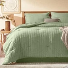 Return Policy Fast Delivery Trusted seller Queen Comforter Set 8 Pieces, Seersucker Bed in a Bag Queen, Sage Green Comforter with Sheets, Comforters Queen Size Bedding Sets with Comforter, Sheets, Pillowcase & Sham and Bed Skirt Product Description 【So Soft, So Lightweight, So Warm】 Our queen comforter set and seersucker bed skirt is made of premium microfiber fabric, very cozy and soft. The comforter is made with excellent 240gsm cloud-like down alternative filling, which never bunched up after washes. It is lightweight and will not make you sweat on hot nights and is warm enough for cold nights, So you will totally love this comforter set for all seasons! 【Chic Seersucker Design】 This queen size comforter set is designed with textured seersucker, slightly pleated to bring vivid and three-dimensional wave visual effect, adding a sense of romance to your bedroom. Whether it's Mother's Day, Women's Day, Christmas, or just to show you care, give this elegant and cozy gift to your loved ones. 【Easy Care, Save Your Time】 The bedding comforter sets are machine washable which can save you more time and energy. For year round softness and prevent pilling up, it's highly recommend to wash it in the gentle cycle with cold water, sun-dry or tumble dry in low when needed. Let our comforter and sheets keep providing you and your family with cozy sleeping! 【Value Bedding Set】 8 Pcs Bed in a Bag Queen includes 1 comforter (88"x 88"), 1 flat sheet (90"x 102"), 1 fitted sheet (60"x 80"+14"), 1 Seersucker Bed Skirt (60" x80"+15"), 2 pillowcases (20"x 30") and 2 pillow shams (20"x 26"). Tips: Our queen bed set is vacuum packaged, it is highly recommended to wash it and tumble dry low temperature to puff the comforter before first use. Or you can expose it to sunlight and tap gently, then it will re-fluffed nicely after hours. 【Satisfactory Service】 We are committed to providing you high quality comforter sets and a caring service. If you have any problem about our products, please feel free to contact us for an exchange or refund. We will provide you 1-Month return and replacement service & life-time free customer service. Shipping Returns Payment Shipping Shipping is FREE to all addresses other than APO/PO boxes in the lower 48 states. All our stock ships from US-based warehouses. Shipped via USPS or UPS (depending on location and package weight) Unless stated otherwise, all orders will ship within 24-72 hours of your payment being processed. Check our feedback to see the great reviews of FAST shipping we offer. Returns Seller does not accept returns Payment We currently accept payment via eBay managed payments only. Once payment is cleared, we will dispatch your shipment within 1-3 business days. Please refer to the "Shipping" tab for more information regarding shipping speed to your destination.