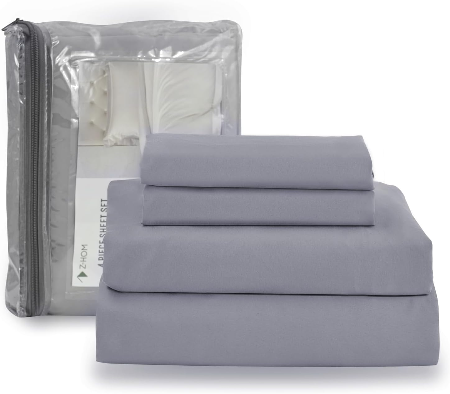 [Certified & Skin Friendly] The bed sheets are crafted from 100% extra polyester and are OEKO-TEX STANDARD 100 certified, guaranteeing that Z-Hom bed sheets are free of harmful chemicals and are gentle on the skin. Our fitted bed sheets are made with a blend of microfiber and elastic all around, providing them with superior strength and elasticity [Deep Pocket Design] The Z-Hom queen bed sheet set is designed to fit mattresses with a depth of about 16 inches. It will fit perfectly if your mattress is less than 16 inches deep. This is a universal size that should fit most mattresses currently available in the market. Great bang for your buck as far as comfort and softness and unlike other very expensive materials of sheets [LifetimeWarranty Service -4 Piece Queen Sheet Set] 2 pillow cases and a flat sheet and fitted sheet. Flat Sheet (102”x 90”) Fitted Sheet (80”x 60”) 2 Pillow Cases (20”x 30”). Experience ultimate comfort with these luxury bedsheets queen size bed set [Easy Care & Long Life] Z-Hom queen bed sheets are machine washable, dry quickly, and last longer than cotton. They are wrinkle, pilling, and shrinkage-resistant, making them perfect for busy families with children, pets, and more. Our bed sheets deep pocket are durable, with no linting, wrinkle resistant, and no pilling [Buy with Confidence] Z-Hom's queen bed sheet set offers great value for a reasonable price. If you have any issues with the set, please reach out to us and we will provide you with the best solution. Bed sheets are great for people of all ages, including parents, spouses, and kids, and are suitable for any time of year. It's also an adorable gift that can decorate your room Product Description The video showcases the product in use. The video guides you through product setup. The video compares multiple products. The video shows the product being unpacked. 1 What's included? 2 Wrinkle free 3 Envlope closure 4 Tight stitches 5 All -round elastic