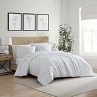 Add gorgeous rustic charm to your bedroom décor with a new printed percale cotton duvet cover set from . Available in a variety of relaxed farmhouse and vintage cottage patterns, these duvet cover sets will coordinate beautifully with any sheet ensemble and provide a restful night's sleep. Constructed with high quality percale cotton, this crisp and breathable 200 thread count duvet are a must have for any bed. The included sham features a 2 pc back for easy removal. Duvet set includes one duvet and 2 shams (1 sham for twin size). Duvet and shams are machine washable for easy and convenient care. MATERIAL: 100% Percale Cotton- constructed with optimal breathability SET INCLUDES: One duvet cover and two king shams FEATURES: Duvet cover features zipper closure and inside corner ties to secure insert form shifting; Duvet insert is sold separately; Medium weight set- perfect for year-round use DIMENSIONS: Duvet Cover- 88"L x 88"W, Standard Shams- 20"L x 26"W CARE: Machine wash cold, tumble dry low