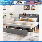 About this item Multifunction Bed Frame: Upholstered bed frame is designed for a modern bedroom and integrates so many practical functions. Classic appearance design, wrapped in soft grey linen fabric and 16D sponge bringing a soft and resilient experience, looks very dignified and atmospheric. Shelf Headboard & Charging Station: Charging station is equipped with 2 USB ports and 2 outlets for daily power needs, which can power phones or reading lights. In addition, a headboard shelf for placing items is designed, giving the platform bed more functions while providing more convenience for people in life. 2 Storage Drawers: Queen size bed frame has 2 dustproof drawers at the bed foot and has pulleys for easy pulling out and in. It can provide necessary help for rooms with insufficient storage space, such as storing clothes, daily necessities, etc., so you no longer need to face a messy room and keep everything in order. Sturdy and Noise-Free: Heavy duty queen bed frame with a metal frame and slats, no box spring needed, suitable for 8-12 inch mattresses. The high-quality material ensures the long service life of the bed frame and can withstand a weight of 1000 lbs. Easy to Assemble: Bed frame is packed in one package and needs to be installed after receiving the package. The necessary installation instructions and installation tools are included. If you have an electric screwdriver, the installation can be completed quickly. It will take about 40 minutes for two people to complete the installation. If you encounter any problems, please feel free to contact us. Product Description IDEALHOUSE Full/Queen/King Bed Frame with Headboard, Charging Station and Storage Drawers Storage headboard and 2 storage drawers for clutter-free bedrooms. 2 outlets and 2 USB ports with 6.7ft cord for charging your phones within easy reach. Upholstered headboard for added comfort and sophistication. 10.24 inches underbed space for keeping your bedroom tidy and well-organized Color Grey & Black Material Metal & Linen Fabric Full Size Dimension 81.9"L x 55.5"W x 40.6"H Queen Size Dimension 86.6"L x 61.8"W x 40.6"H King Size Dimension 86.6"L x 77.6"W x 40.6"H Special Feature: Squeak proof Weight Capacity 1000 LBS Need Assemble Yes Package Content: Bed Frame, Headboard, Slats(Mattress not included), Instruction, Tools & Manual Box Spring No need Soft Fabric Headboard Strudy Slats & Mute Bars Easy to Assembly Payment Delivery details Terms of sales About us Contact us Payment We accept payment either via PayPal or any of the following credit cards; Visa, MasterCard, Discover, and American Express. Wishing you a happy life! Delivery details We will provide you with the tracking number on the same day or the next day, and transport your package through UPS, DHL, FedEx and other courier methods. If you have any questions, please feel free to contact me and I will do my best to help you solve the problem. Wishing you a happy life! Terms of sales We offer a one month free return and exchange service, and you don't have to bear any losses. We will provide multiple solutions for you to choose from. If you have any questions, please feel free to contact me and I will do my best to help you solve them. We offer a two-year warranty period. If you have any quality issues with the product you purchased within two years, please feel free to contact me. I will provide you with a free replacement service. If you have any questions, please feel free to contact me. I will do my best to help you solve the problem. Wishing you a happy life! About us We are committed to becoming the best eBay seller, with high-quality suppliers, providing the most sincere service, including pre-sales and after-sales service, to give you a satisfactory shopping experience. If you have any questions, please feel free to contact me, and I will do my best to help you solve the problem. Wishing you a happy life! Contact us If you encounter any problems, please contact me by email at the first time, I will provide you with a solution as fast as possible so that I can give you a satisfactory shopping experience, wish you a happy life! Brand GarveeHome Compatible Mattress Size QUEEN/FULL OPTIONAL Frame Material Linen, Metal Type Bed Frame Features Bed Frame with 2 Storage Drawers Color Grey Finish Unfinished Number of Drawers 2 Country/Region of Manufacture China Manufacturer Warranty 5 Years Product Dimensions 86.6"L x 61.8"W x 40.6"H/55.5"L x 81.9"W x 40.6"H Style Modern Item Weight 85.1 Pounds Maximum Weight Recommendation 1000 Pounds Room Bedroom