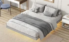 Specifications Place of Origin #originPlace# Main Color Grey Main Material Pine Bed Size Queen Dangerous Goods #dangerFlag# Dimensions & Weights Assembled Length (in.) 82.50 Assembled Width (in.) 62.70 Assembled Height (in.) 10.50 Weight (lbs) 52.90 Product Features [Modern and Concise Style] This queen-size low bed is an excellent choice for apartments, studio, or essentially anywhere where the space-optimizing design will unleash your bedroom's modern sense and simplicity. The queen bed possesses a rustic minimalistic style, suiting interior designs of all. [Floating Effect with LED Lights] The LED lights beneath the queen bed sheds a soft glow on the floor, allowing you immerse in a cozy and warm atmosphere. With the unseen bed legs beneath the platform bed and the glow of LED lights emitted under the bed frame ,it creates a wonderful and soothing effect of floating in the air. [Sturdy Platform Frame ] This bed is mainly crafted from high-quality solid pine wood, providing lasting sturdiness and durability. The bed frame is supported by three lengthwise strengthened slats with 4 legs each to provide great stability and durability, which you believe suits your bedroom the most. [Low Profile Bed] The design of low profile platform bed frame will definitely give you a particular experience of convenience and trouble-free while getting in and out bed to satisfy your every night and dream. This design fully explores and optimizes the capacity of your sleeping experience and living space. [Easy Assembly] The queen bed is delivered in one individual package, along with the manual instruction and queen set of hardware necessary to guide you through the process of assembly, and the bed will be smoothly assembled. Description Queen Size Floating Bed with LED Lights Underneath This queen size bed comes in modern and minimalistic style appearance, making this bed an outstanding centrepiece to any bedroom. This bed will favourably meet your personal space decoration. In addition, the design will give you free and comfortable feeling to better optimize the room utilization, putting less effort in making a tidy and elegant display. This wood bed has a timeless appeal for anyone who enjoys simplicity and nature. Description Product Type Floating Bed, LED Light Size Queen Color Grey