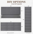 This is a Queen Headboard in Dark Gray-fabric with an Art Deco style. It is designed as a Wall Mounted Peel and Stick Headboard, making it easy to assemble. The headboard is made of Linen upholstery fabric, measures 10"W x 26"H, and includes storage. It is eco-friendly and comes with 9 pieces for wall mounting. The product is stylish, lightweight at 15.47 pounds, and suitable for a Short Queen size bed.