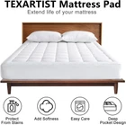 Soft and Comfortable. Overfilled with 4D spiral fiber which traps air that enables the mattress pad to breath and keep its shape longer. Our Quilted Mattress Pad helps your expensive mattress last longer by protecting it from stains and general wear and tear, all while providing you an extra layer of comfort. Breathable and Cool to Touch. Made of high quality materials, the top surface will wick away any moisture or sweat, offering cozy and breathable sleeping environment. Cool and silent protection that doesn't disrupt your valuable sleep, makes you sleep well all night. Deep Pocket and Machine Washable. Deep pocket design effortlessly grips any mattress up to 21" and gives a smooth appearance once you applied. Constructed with beautiful quilted box pattern style to prevent fill from shifting. Tests show that it will keep shape even after more than 109 times machine washing. What You Can Get: Mattress pads are available in Twin 39" x 75", Twin XL /Twin Extra Long 39" x 80", Full 54" x 75", Queen 60" x 80", King 78" x 80" and California King 72" x 84". Customers' satisfaction is our top priority. Open Steps: Since it’s delivered in compressed package, it may look thinner than expected, please do the following steps before use: 1.Take out mattress pad. 2.Shake and pat it. 3.Tumble dry on low heat for 20 minutes. 4.It will take its shape and you will get a soft mattress pad.If you have any issues, please contact us anytime, and we will do our best to resolve them promptly. Product Description 1 Usage Steps 2 Colors 3 Mashine Washable 4 Sizes Is this mattress pad waterproof? NO. It's not waterproof,but it will protect your mattress form stains, keep your stay comfortable while preserving the life of your mattress. Will this mattress pad keep me cool? YES. This mattress pad does not generate heat, it will absorb moisture and keep you cool and dry. Perfect choice for hot memory foam. My mattress is too firm, I'm looking for something to make it much softer like a pillowtop, will this do it? This mattress pad do offer an extra layer of comfort but if you want a really soft deep lush bed, we advice you put this mattress pad on your 2 or 3 inch memory foam topper, it will make your bed heaven. MATTRESS PAD+ GEL MATTRESS TOPPER= HEAVEN! Will it flatten after a long time use? Overfilled 4D spiral fiber keeps this mattress pad fluffy for a long time. Even though it flatten some, just tumble dry on low heat for 20mins, it will regain fluffiness. Will TEXARTIST help me with my issue? TEXARTIST service team will always offer immediate answers to customers and fix problems.