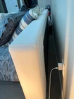 Transform your bedroom décor with this stylish platform bed frame from Joss & Main. Crafted from durable wood material with a sleek wood-effect finish, this queen-sized bed frame boasts a striking rectangular shape with a luxurious white leather upholstery fabric. It comes with two built-in nightstands to keep your essentials within reach, and all hardware and tools needed for assembly are included. This modern-style bed frame is the perfect addition to any bedroom, giving it a chic and sophisticated look. The bed frame is easy to care for, requiring only a damp cloth for cleaning for the bed frame and leather cleaner for the headboard. Assembly is required, but with the included hardware and tools, it will be a simple task by only bolts screws and an Allen wrench. Elevate your bedroom with this stunning platform bed frame from Joss & Main. When puchased knew it was $1,176.31 but I am listing it $700.00 for basically half. All sells are final and is listed as is.