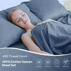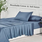 4 Pieces Queen Sheet Set: 1 piece 90"x102" flat sheet, 1 piece 60"x80" + 16" deep pocket fitted sheet, 2 pieces 20"x30" pillowcases Sateen Silkly Sheets:Keep cool with breathable cotton bet set in warm climates or summer months, silky smooth feel, and a comfortable weight that hugs your body 100% Cotton Sheets: Woven with a high-quality sateen weave & long staple cotton yarns, these all-cotton sheets provide the true & natural cotton feel that people have enjoyed for years. Deep Pocket Sheet Set:Our deep-pocket 400 thread count cotton bed sheets are specifically designed to give you the perfect fit for mattresses up to 16-inches tall. Easy Care Bed Set:Our exclusive cotton sheets feature a dense and lasting weave, ensuring long-lasting durability and resistance to wear and tear
