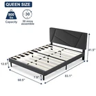 Return Policy Fast Delivery Trusted seller Queen Size Bed Frame with Linen Fabric Upholstered Headboard, Sturdy Wood Slat Support, Noise-Free, No Box Spring Needed, Heavy Duty Feet, Quick Assembly, Dark Grey Product Description Fashion and functional design - This queen size bed combines modern elegance with practicality, featuring a beautifully cushioned headboard and a stylish, understated design. The exquisite fabric interior and diagonal stripe design add a refined touch to any bedroom, making it a fashionable center for various decorative styles Comfortable Upholstered Headboard - The headboard is wrapped in high-quality, breathable fabric with dense foam padding, offering a soft and comfortable surface for lounging or reading in bed. Its cozy, neutral-toned fabric easily matches any bedroom decor, creating an inviting and relaxing atmosp Sturdy & Durable Construction - Built with a robust wood frame, reinforced metal support, and durable wooden slats, this bed frame provides stable, reliable support for up to 800 lbs. The combination of sturdy wood slats and metal frame enhances durability and mattress longevity, eliminating the need for a box spring Quiet, Motion-Free Sleep - Designed with an EVA silent bar and cushioned central support, this bed frame minimizes noise and vibration, offering you a quiet, restful sleep. Velcro-secured wood slats reduce friction and movement, ensuring a stable, noise-free sleeping environment for undisturbed rest Effortless Assembly & Compact Packaging - All parts, tools, and easy-to-follow instructions are packed efficiently into a single box, making transport and assembly simple. With step-by-step guidance, two people can complete the setup in about 20–30 minutes, transforming your bedroom quickly and hassle-free Shipping Returns Payment Shipping Shipping is FREE to all addresses other than APO/PO boxes in the lower 48 states. All our stock ships from US-based warehouses. Shipped via USPS or UPS (depending on location and package weight) Unless stated otherwise, all orders will ship within 24-72 hours of your payment being processed. Check our feedback to see the great reviews of FAST shipping we offer. Returns Seller does not accept returns Payment We currently accept payment via eBay managed payments only. Once payment is cleared, we will dispatch your shipment within 1-3 business days. Please refer to the "Shipping" tab for more information regarding shipping speed to your destination.