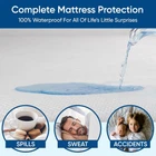 PROTECT YOUR MATTRESS INVESTMENT: Accidents happen! Don't let it ruin your mattress. Our 100% waterproof mattress protector will protect your mattress from all spills, stains & accidents. Simply throw it in the wash for an effortless cleanup. EXPERIENCE THE LUXURY OF TENCEL: Not all mattress protectors are created equal. Most are made with cheap cotton fabric. Our top layer is made up of ultra soft 100% Tencel fibres. Tencel is 10 times softer than cotton, and more breathable and cooling than other natural fabrics. HOT SLEEPERS STAY COOL: You deserve a deep, restful sleep. Luxury Tencel top layer is comfortable and cooling against your skin. Designed to wick away moisture from the body, keeping you cool and dry all night long. No more sweaty sleep, and no more tossing and turning. FOR EVERY BED IN THE HOUSE: Our protector fits snug and tight around all mattress types - without any slipping or bunching. Ultra strong side skirt is 50% thicker than competitors, guaranteed not to rip or tear, and stretches to fit any deep pocket mattress up to 18" deep.