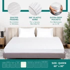 ULTRA-SOFT FLUFFY MATTRESS PAD: This quilted fitted sheet style mattress pad is breathable and has an ethereal soft touch. The fiber fill is designed to be soft and completely noiseless whilst also regulating the body heat. WATERPROOF: Whether you have pets or kids, accidents and spills can happen. This 100% waterproof mattress protector blocks liquids and moisture from getting in and keeps your mattress dry and protected! ALLERGEN RELIEF: Sleeping on an unprotected mattress can expose you to allergens and dust, making it difficult to breathe and sleep. Impenetrable cover shields you from pesty allergens and helps you breathe easily. Seal out dust, pet hair for good! 360° FULL ELASTIC SNUG FIT: Fear sliding and moving? This full elastic deep pocket bed skirt stretches all around and firmly secures the pad into position. MACHINE WASHABLE AND DURABLE: Made of high-quality polyester fabric (surface) and polyurethane (inside lining), this pad is wrinkle resistant, easy to care and machine washable.