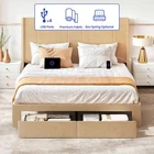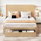 Queen Size Storage Bed Frame Upholstered Headboard w/ Platform 2 Drawers & USB Product Description NOTE: Professional Installation is Recommended. Description: 1. Color: Beige 2. Material: Wood, Iron, Velvet Upholstery 3. Special Feature: 2 Drawers with Casters, Built-In USB Ports, No Box Spring Required 4. Size: Queen 5. Room Type: Bedroom Features: Luxurious Storage Made Simple - Elevate your bedroom with two spacious storage drawers seamlessly integrated at the foot of this queen-size bed frame. Designed with smooth-rolling casters for effortless access, the drawers provide ample space for bed linens, clothes, blankets, shoes, or books, combining practicality with a sophisticated, unified design. Convenient USB Charging Ports - Stay connected and fully charged with four built-in USB ports—two on each side of the plush velvet headboard. This feature allows you to charge multiple devices simultaneously, keeping your essentials within arm’s reach while enhancing the elegance of your space with its beige velvet upholstery. Superior Comfort with Thoughtful Details - Experience unparalleled comfort and convenience with this bed’s sturdy wooden platform, which eliminates the need for a box spring while providing excellent mattress support. Noise-reducing EVA mute bars ensure quiet, restful nights, while anti-scratch foot pads protect your floors, making this bed frame a practical yet luxurious choice. Durable & Stable Construction - Built for lasting durability, this bed frame features a robust steel structure paired with fixed wooden slats, supporting up to 1100 lbs with ease. High-density steel drawers offer extra resilience, ensuring they glide smoothly and maintain their form for years to come. Stress-Free Assembly - Skip the hassle with an intuitive assembly process. This bed frame includes clear instructions, labeled components, and all necessary tools to make setup a breeze—so you can spend less time building and more time enjoying your new, stylish sanctuary. Dimensions 1. Product Dimensions: 81.8"L x 61.8"W x 44"H 2. Maximum Weight Capacity: 1100 lbs 3. Item Weight: 84 lbs Package Included: 1. 1x Bed Frame ( MATTRESS NOT INCLUDED ) 2. 1x Instruction Manual Book Shipping 1. Normally the item will be dispatched within 1 business day if payment is cleared before 12pm PST. 2. Please verify the correct shipping address in your PayPal account before making the payment. We only dispatch the item to the address that is sent to us at the time of checkout. 3. We don't ship to Hawaii, Alaska, Puerto Rico, APO/FPO/PO Boxes. 4. We don't provide local pick-up service. 5. Normally we will use USPS, UPS, FedEx & LTL to dispatch items. Payment 1. We accept PayPal and credit card. 2. We will ship to the confirmed Paypal shipping address that is provided with the payment only. Return 1. 30 days Money Back Guarantee. 2. Please contact our customer service to receive a RMA form first if want to return the item. 3. All returned items MUST in new condition with the original package. Contact If has any problem, please contact us by sending an ebay message. Our customer service will resolve the problem as soon as possible. On Jan 24, 2025 at 01:32:10 PST, seller added the following information: