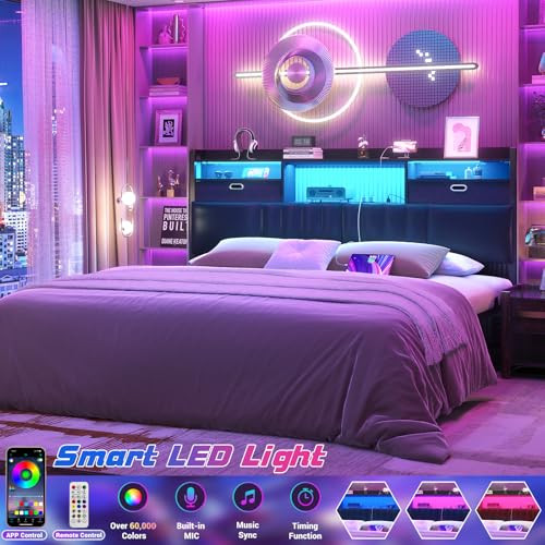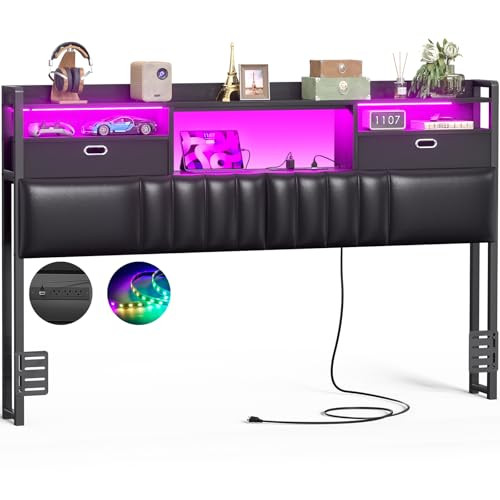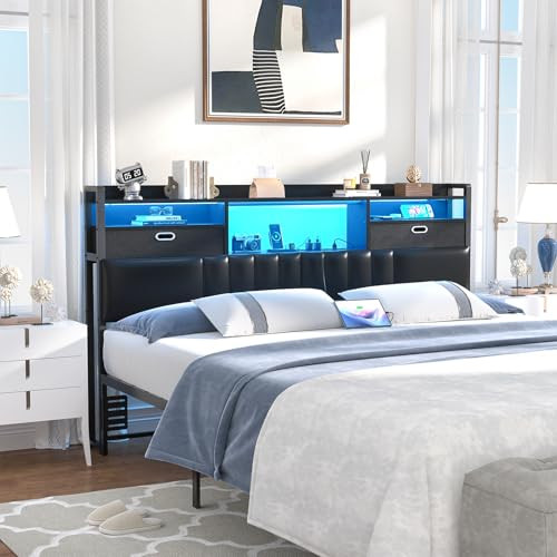 30 Days Return Policy Fast Delivery Trusted seller Queen Headboard with Drawer Storage and RGB LED Light, Queen Size Upholstered Headboard with Power Outlet and Bookcase, Stable Queen Headboard Only, for Bedroom/Dorm Room/Guest Room, Black Product Description Convenient Charging Station: The Headboard features 3 Outlets& 2 USB ports, which can easily charge your phone, headset, and other electronic devices. Don't worry about messy wires and cords hanging outside of your bed with our careful headboard. The length of the cable is 6.56FT long. You can put the headboard whatever you want! Queen Headboard with Fantastic RGB LED Light: The LED headboard has a built-in smart light strip with over 60,000 colors and multiple flashing modes. LED lights can change the light's color according to the rhythm of the sound and music. Sync the lights to your music's beat or set a timer for the perfect ambiance. Enjoy with music and light at nighttime! Comfortable Upholstered & Ample Storage Space: The upholstered headboard offers comfortable and soft back support for reading and lounging. Meanwhile, the headboard provides ample storage shelves and two extra storage drawers. Even if you don't have a bedside table, you can store mobile phones, alarm clocks, books, water, glasses, tissues, chargers, lamps, decorations, or anything else you want. Sturdy and Stable Structure & Easy to Assembly: The storage headboard is made from high-quality wood board and rugged metal frame, which can offer a stable structure and no wobbles or shakes. The bottom connectors are adjustable and suitable for bed frames of various sizes and styles. Easy to Assembly: All necessary tools and hardware are provided for easy assembly, with clear instructions and labeled parts. The step-by-step guidance is easy to follow. Any problems pls contact us, and our experienced customer service team will respond in 24 hours ASAP. Shipping Returns Payment Shipping Shipping is FREE to all addresses other than APO/PO boxes in the lower 48 states. All our stock ships from US-based warehouses. Shipped via USPS or UPS (depending on location and package weight) Unless stated otherwise, all orders will ship within 24-72 hours of your payment being processed. Check our feedback to see the great reviews of FAST shipping we offer. Returns As our valued customer, we will do our best to make sure the product you receive arrives to you on time and as expected. If you are not satisfied with your purchase, please contact us within 30 days of receiving your order to process a return. Payment We currently accept payment via eBay managed payments only. Once payment is cleared, we will dispatch your shipment within 1-3 business days. Please refer to the "Shipping" tab for more information regarding shipping speed to your destination.