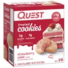 Quest Strawberry Cake Frosted Cookies feature a sweet coating around a soft-baked fruit flavored center. Quest Frosted Cookies provide the sweet satisfaction of a sugary bakery cookie with less than 1g of sugar, 5g of protein, and 1g of net carbs per serving*. Sounds too good to be true? Taste them Quest frosted cookies for yourself! Perfect for an on the go dessert treat, shareable celebration, or anytime the cravings hit for a soft and chewy frosted strawberry cookie. FROSTED COOKIES. Enjoy the berry yummy flavor of Strawberry Cake in this soft baked, fruit flavored cookie enrobed in a sweet frosted coating with less than 1g of sugar, 5g of protein, and 1g of net carbs per serving*. ON A QUEST. Our soft & chewy frosted cookies are just the right amount of sweet to keep you satisfied when it’s snack time, making them a great low sugar*, low carb* protein snack. ON THE MOVE. Enjoy a sweet & satisfying cookie that fits right into your busy schedule. Hint: This protein cookie makes for an enjoyable afternoon snack or late night low carb* snack! QUALITY INGREDIENTS: Delight in the satisfying flavors and nutrients of Quest Frosted Cookies made with quality ingredients. SERVING SIZE: Offered in 8ct cartons containing individually wrapped 0.88oz cookies. ALL TASTE. NO COMPROMISE. Give your body the nutrients it needs without sacrificing your favorite flavors. Our cookies have all the sweetness you want in a snack without compromise.*See Nutrition Facts for Calories, Total Fat and Saturated Fat Contents. Total Carbohydrates, 1g Net Carbs per serving. (Net carbs = Total Carbs - Dietary Fiber - Sugar Alcohols)