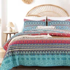 BOHO QUILT SET : This summer bedding include:1*Quilt (90" x 90"inches) and 2*Pillow Cases (26" x 20"inches). Made of Microfiber Polyester. Soft, lightweight and durable. High quality material has the features of non-fading, anti - pilling and stains resistant for increasing using longevity.(Notice: Pillow cases is randomly tailored from the whole fabric to match the duvet cover, maybe not totally same as the pictures.Please kindly understand pillow cases design are different.) SOFT WARM & COMFORTABLE DESIGN: Boho quilt set is reversible, both sides could be used individually. Cozy and breathable to keep you extremely comfortable all night long. Durable bed cover provide warmth and softness for you and your family. Beautiful versatile quilt creats a comfortable sleeping environment for good night rest. BOHO STYLE: The queen quilt bedding set is designed with multiple elements and vibrant colors, creating a lively atmosphere for your bedroom or guest room. Ideal for birthdays, wedding, holidays, Christmas and more. Durable bedspread sets are perfect for family with pets or . MULTI-PURPOSE ALL SEASON USAGE: This quilt designed for all season. Perfect thickness coverlet quilt for summer. As well as a blanket for winter, enough filling to keep warm. Use it as quilt,bedspread, blanket or bed cover. EASY CARE: Machine wash cold, gentle cycle, tumble dry low. Tightly stitching on the edging of quilt set will hold up well through repeatly washing.
