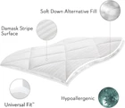 Brushed Microfiber Pure cotton cover features box stitching, diamond quilting, and an elegant damask stripe Quiet and breathable, naturally NULL, and NULL NULL resistant Incredibly soft low loft GELLED NULL fill doesn't shift or clump; Added layer increases air flow, improving comfort Easy-care: Machine washable, tumble dry on low; King 78" x 80", Fill Weight: 1 lb. 1 oz Add a NULL Cover to Your Mattress This traditional mattress pad adds a NULL air layer to any mattress. This mattress pad features a luxurious damask stripe surface and a thin layer of soft down alternative filling. Diamond quilting adds style and durability, preventing the fill from clumping or shifting. This mattress pad adds softness and creates an air layer above your mattress that increases air circulation and breathability to better regulate sleeping temperature. Fits Memory Foam and Pillow Top Mattresses This comfortable and practical SLEEP TITE mattress pad is made with a UNIVERSAL FIT design. Fitted sheet style elastic ensures a smooth, even and secure fit on mattress from 6 to 22 inches thick. Peace of Mind NULL down alternative fill offers the benefits of down without NULLs or NULL. Rest assured knowing this mattress pad includes a 5-year U.S..