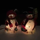 This is a rare Mr. & Mrs. Snowman fiber optic table top plush from 2002, perfect for the Christmas season. The snowman figurines stand 12 inches tall and feature color-changing lights. The design includes animation and seasonal themes, made from mixed materials. A unique and festive collectible for holiday decor. Exact items pictured are what you will receive.