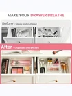 Love how these clear organizers keep my makeup and small items neatly sorted! The four different sizes are super versatile—perfect for my vanity, desk, and bathroom. Sturdy yet lightweight, and the see-through design makes finding what I need a breeze. A must-have for decluttering!