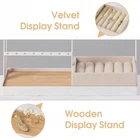 This jewelry organizer is a game-changer! The soft velvet lining keeps my pieces scratch-free, and the four spacious tiers fit all my necklaces, rings, and earrings perfectly. Love the 16 earring holes and 15 hooks—everything stays tangle-free and easy to find. The compact case looks sleek on my dresser but also travels well. Finally, a stylish way to keep my accessories organized without clutter!