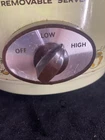This RIVAL 3350/1 slow cooker is the perfect addition to your kitchen for easy and convenient cooking. With a 5 qt capacity, it is perfect for cooking any meal, from stews to soups. The stoneware material and glossy finish give it a sleek and modern look that will fit in with any kitchen decor. The electric power source and 120 V voltage make it easy to use, and the two number of settings/programs ensure that your meal is cooked to perfection. This set includes a pot, lid, and base for easy and complete cooking. Upgrade your cooking game with this RIVAL slow cooker today! Has some scratches/ wear/ staining to finish. Lid is hazy & missing logo disc on handle. Has a small chip on bottom of crock. Shown in photos. Works great.