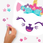Purrfectly precious, this officially-licensed Like Nastya Unicorn Cat Giant Peel and Stick Wall Decal set celebrates the bubbly aesthetic of the channel, Like Nastya! Installing this set of decals is as easy as peel, stick, done! Featuring a white unicorn cat and various clouds, hearts, stars, and an array of alphabet letters, this set is perfect for any Like Nastya fan! Decal size(s) - .82 inches x .80 inches to 15.30 inches x 16.21 inches. Has glitter accents. Easy to apply - just peel and stick Applies to any smooth, clean, flat surface; product may not adhere to unclean, textured, recently painted, or nonstick surfaces Removable and repositionable with no sticky residue left behind Perfect for both renters and homeowners