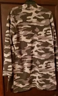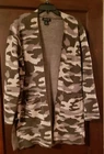Rachel Zoe Cardigan Shrug Open Sweater L Camo. 2 Pockets. Long Sleeves. Viscose, Nylon, P.E.T. fabric. Knit. Lightweight. Hand Wash. Slits on sides. 33" Long