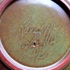 The vintage Rackliffe ceramic bowl set includes a bowl, lid, and underplate, featuring a strawberry pattern in multicolor. This decorative art pottery piece was manufactured in 1980 in Blue Hill, Maine, showcasing a vintage aesthetic. The set belongs to the Strawberry product line and is crafted using pottery techniques, making it a unique addition to any collection of decorative cookware or dinnerware.