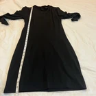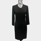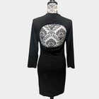 Hot girl vibes emit from this mini dress Snap buttons at the nape of the neck lend to an open back across the shoulder blades Hidden side zipper Stretch in material lends to all the flattering curves Mini length 3/4 to long sleeves Hidden zipper accent at the wrists Excellent preloved condition Minimal to no wear observed on the dress Polyester spandex nylon Lycra Dry clean Approximate measurements in inches taken when laid flat Armpit to armpit 15 Waist 14 Hips 17 Sleeve length 20 Length 35 Approximate measurements in pics Dog friendly home Smoke free home Questions just ask Bundle and save Make offer
