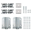 Box rail hanger kit is made of steel,zinc-plated finish,durable, rust, weather resistance and long-lasting use 2 End caps and bolts for attaching door strap and self-lubricating derlin bearings,easy installation with mounting hardware and instructions included Adjustable both laterally and vertically, The sturdy plates quickly mount to your door and the adjustment bolts are easy to adjust the drop of the door to ensure a good fit The BOX RAIL HANGER KIT is a full, all in one hardware kit for simple hanging, sliding doors. It will withstand out door extremes, a perfect application for garages ,sheds,wood sliding doorsand green houses. Use on wood frame sliding doors from 1-1/2" to 2" thick.Suitable for: Track size 2-1/4 In. x 1-3/4 In The box rail hanger kit consists of 2 sets,safe working load - 225 lb. per hanger