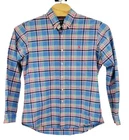 Ralph Lauren Custom Fit Blue Pink Plaid Button Down Shirt Men's Size Large Nice. It's a blue and pink plaid with a pink embroidered pony on the left side of the chest and it's made of 100% cotton. Please check measurements as preowned item measurements may vary. The measurement across the chest laying flat is 24 1/2 inches and the length from the shoulder to the bottom is 30 inches.
