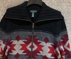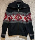 Very good, no holes or stains. Pre-Owned, Ships USPS Ground Advantage. BG338 Ralph Lauren Jeans Co Womens Medium Wool Knit Western Aztec Cardigan Sweater