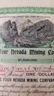 The product is a rare vintage Big Four Nevada Mining Company stock certificate from the 1906 issue number 37. This historical document represents ownership in the mining company and is a piece of scripophily collectible from the power and utilities industry in the United States. The stock certificate is circulated and holds a unique value for collectors interested in stocks and bonds from this era.