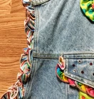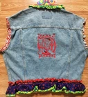 Elevate your streetwear game with this rare vintage Gap upcycled denim jean vest jacket. The two-tone pattern and fringed accents give it a unique and edgy look, perfect for any occasion. The vest features a collared neckline, button closure, and is embellished with embroidered logos, making it a statement piece in any outfit. Made of cotton and lined with cotton, this lightweight vest is perfect for walking, dancing, skateboarding, running, and jogging. The unisex design is suitable for both men and women, and it comes in a size medium. This Y2K-inspired piece is part of the Gap product line and is a must-have for any fashion enthusiast looking to add a touch of vintage to their wardrobe. Excellent pre-owned vintage condition. Unique and bold. Shipped USPS ground advantage. Message me with any questions for a prompt reply. Be sure to check out and consider following my eBay shop thriftthippie to see more amazing items listed daily. Y'all stay safe healthy and happy!!!