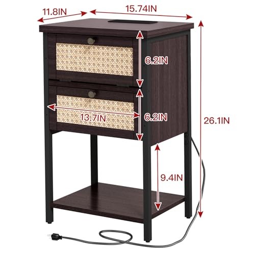 Menu 1. We require immediate payment. 2. We currently accept payment via eBay managed payments only. 3. Once payment is cleared, we will dispatch your shipment within 1-3 business days. Please refer to the "Shipping" tab for more information regarding shipping speed to your destination. End Table with Charging Station, 2 Tier Rattan Decorated Nightstand with USB Ports and Outlets, Bedside Table with Drawer, Modern Sofa Side Table for Bedroom, Living Room, Office, Cherry Red Product description End Table with Charging Station: Our side table comes with 2 AC outlets and 2 USB ports, solving your phone's power problems, convenient for you to use at any time. Multiple ports, no need to worry about the desk lamp, headphones occupy your charging position. With power cord, allowing you to move this nightstand easyily, you can charge your devices (cell phones, laptops, desk lamps, etc.) at any time Classic and Stylish Bedside Table: Our nightstand is designed with double rattan doors, wood panels with rattan woven doors to complement each other, a sense of seniority comes out, it can match any style of your home, and is an indispensable piece of furniture for your home. It does not only exist as a bedroom nightstand, it can also be applied to the living room, office, study, etc Large Capacity: The bedside table comes with a 4 tier storage design for storage or display, one tier of rattan door is flip door design, the other tier of rattan door is for drawer design, two tiers of rattan decorative cabinet door combines aesthetics and practicality, Top/bottom open shelf for your lamps, drinks, phones, books and magazines, etc. Large capacity space, very convenient to store a variety of items Quality You Can Trust: Overall size: 15.74 "W x 11.8" D x 26.1" H.Our side table is made of sturdy iron frame with thickened particleboard, which is solid and durable while maintaining the design, as a high quality end table that can be used for years without replacing other home products. With 4 adjustable feet to provide better stability while protecting your home's floors from scratches Easy to Install: With the simple structure and accessories marked with numbers, with detailed instructions and tools, you can easily assemble this nightstand in 25 minutes. Any assembly problems or missing parts, please do not hesitate to contact us PLEASE MESSAGE US IF YOU HAVE ANY OTHER QUESTIONS, AND MANY THANKS FOR READING ALL OF THIS. Copyright ©#. All Rights Reserved.