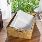 Product parameters Product Name: Straw Storage Basket Material: Iron+Seaweed Color: Yellow, Coffee Dimensions: as follows Yellow small mouth length 34cm, width 24cm, height 11cm, weight 0.26kg Reminder: The storage basket is woven with seaweed. Imperfect weaving and burrs are normal and do not affect use. It has natural splicing joints and is not a quality issue. The size is manually measured, and 1-2 centimeters are normal. Package includes 1 x Storage Basket On Feb 11, 2025 at 01:50:10 PST, seller added the following information: