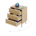 Return Policy Fast Delivery Trusted seller Rattan Nightstand with Charging Station, Night Stand with 3 Large Rattan Drawers, Accent End Table, Bedside Table with Solid Wooden Legs for Bedroom, Natural BZZ006ME Product Description Boho Nightstand: A wonderful collection of delicate rattan, metal sliding drawers and matte finishes for visual perfection. More than just a bed side table, it is also a sleek storage cabinet, coffee table or buffet sideboard to decorate your home environment Charging function: The night stand with drawers comes with 2 AC outlets and 2 USB ports, which are handy to charge your multiple devices in one time. No matter next to your sofa or bed, it is ready to power your computer, tablet, record player, game console and more Large Storage Space: The end table has a large desktop, which can place daily items like photo frames, ornaments, tissues, etc. The bedside table with 3 large drawers allows you to store keys, mobile phones, and cards, books, magazines and other items Multipurpose: The overall size of the tall nightstand is 23.6"L x 15.7"W x 28.5"H. Not only can be used as a bedside table, but also as an end table, entryway cabinet, console table, etc., which can be used for all kinds tables according to your needs Easy Assembly: It's easy to put together with detailed, step-by-step assembly instructions and numbered accessories, so just follow the steps and trust your hands, you can get a practical boho night stand Shipping Returns Payment Shipping Shipping is FREE to all addresses other than APO/PO boxes in the lower 48 states. All our stock ships from US-based warehouses. Shipped via USPS or UPS (depending on location and package weight) Unless stated otherwise, all orders will ship within 24-72 hours of your payment being processed. Check our feedback to see the great reviews of FAST shipping we offer. Returns Seller does not accept returns Payment We currently accept payment via eBay managed payments only. Once payment is cleared, we will dispatch your shipment within 1-3 business days. Please refer to the "Shipping" tab for more information regarding shipping speed to your destination.