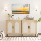 【Durable & Stable Structure】Crafted with premium MDF (high-density fiberboard),this cabinet combines sustainability and strength.MDF’s humidity-resistant-resistant,warp-proof design offers 20-30% higher load capacity than standard wood,with lower expansion rates (<0.3% in humidity) to keep doors flawlessly aligned. Includes anti-tip hardware for secure wall-mounted installation, minimizing tipping risks. 【331L Versatile Storage】Dimensions: 14.96"D x 47.43"W x 28.54"H. Two spacious compartments and two adjustable shelves fit tall wine bottles, short plates, shoes, or small items—ideal for organizing while keeping hazards away from kids/pets. 【Timeless Farmhouse Charm】Blends bohemian-inspired rattan doors with modern wood finishes.Perfect as a buffet,sideboard,credenza,TV stand,or coffee table.Seamlessly complements entryways,living rooms, or bars for understated, textured elegance. 【Built-In Power Hub】Features 2 AC outlets + 2 USB ports to power entryway lights,coffee makers,bar accessories,lamps,phones,and more.Streamline charging—no messy cords! 【Easy to Assemble】All components are labelled,and comes with detailed instruction and provided tools,this rattan sideboard will be engaged in work and refresh your dining room,hallway,entry,living room quickly