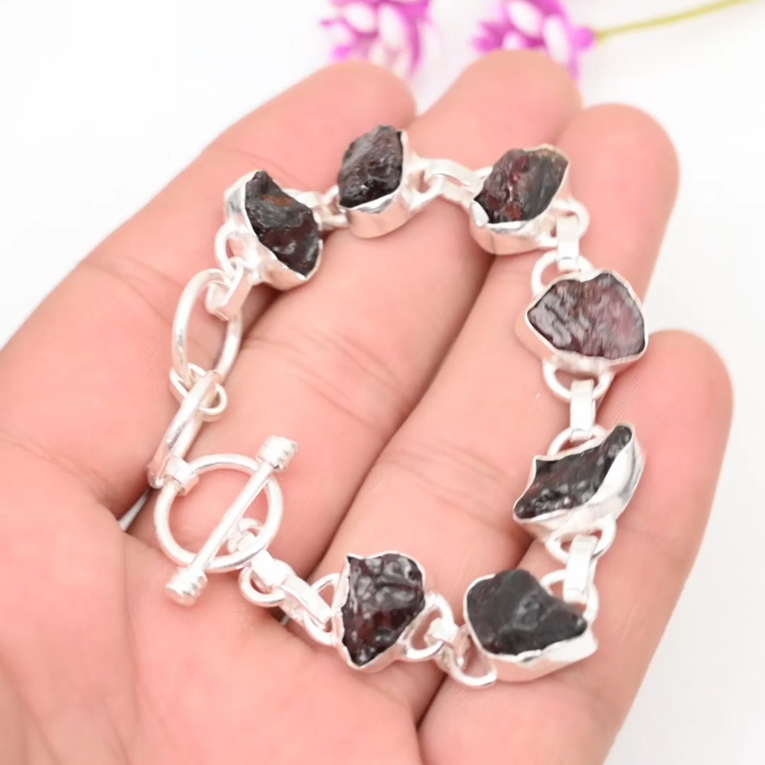 Raw Garnet Gemstone Jewelry 925 Sterling Silver Handmade Chain Bracelet For Gift