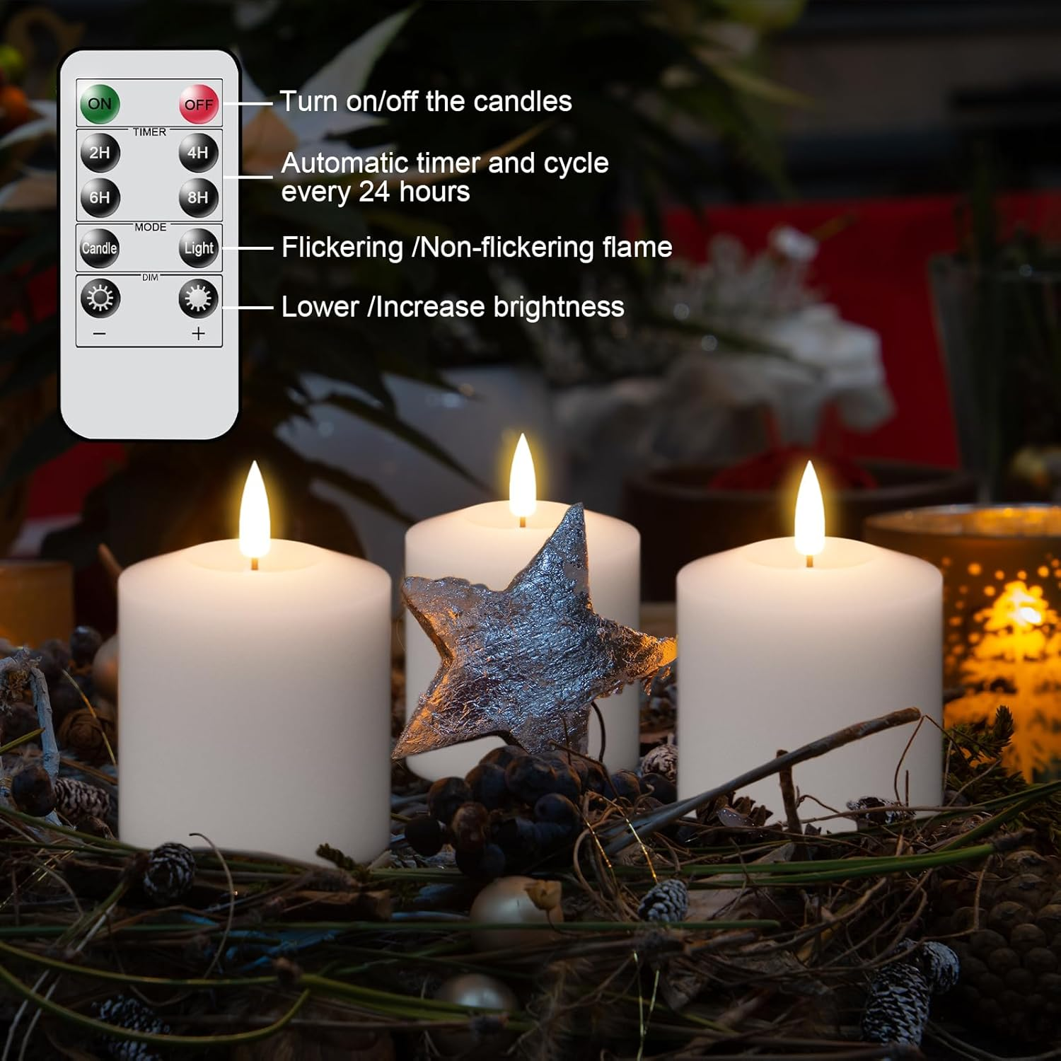 Rechargeable Tea Lights Battery Operated, Rechargeable Candles with Remote Timer, LED Tea Lights with Charging Cable, 6 Pack Real Wax LED Votive Candles for Home Decor (White, 2 X 3.2 Inch) RECHARGEABLE TEA LIGHTS: A set of 6 white tealight candles with a charging cable, lets you away from the trouble of repeatedly replacing the battery, just use the charging cable to power the candles, patiently wait 2-3 hours REALISTIC 3D FLAMELESS: These flameless candles have a 3D flame, the warm LED light is pretty and bright enough.they have a more natural flickering light. look and behave more like real candles, really add to the ambiance of the holiday REMOTE CONTROL VOTIVE CANDLES: For Flameless candles with remote control, slide the ON/OFF switch at the bottom of the candles to ON and then use the remote control to control them, including turn on/off, 2/4/6/8H timer mode, brightness adjustment, flicker or steady, saving you the trouble of picking up these candles one by one to close them manually TIMER BATTERY OPERATED CANDLES: When you often forget to turn off the candles and cause the battery out of power or don't want to get up to turn them off when you sleep, you can choose the 2/4/6/8H timer tealight candles are very convenient, you just need to turn on the timer, it will automatically turn off after 2/4/6/8 hours, automatically turn on the next day HOME DECOR TABLE CENTERPIECES: Home decorations and holiday decorations. Place in glass cups or wine glasses with pumpkins as decorations for your festival party. Designed for muti-scene: Christmas decoration, Table Centerpiece Decor, Wedding, Anniversary, Funeral, Halloween, Christmas, Parties, wall Sconces, tea lights/votive holders GenSwin Rechargeable Tea Lights with Remote Timer, Battery Operated Tealights Candles, Real Wax LED Tea Lights with Charging cable, 6 Pack LED Votive Flameless Candles for Home Seasonal Decor Decor (White, 2 x 3.2 Inch) Item model number FXT6-YK-CD Part Number 6 Style Art Deco Lamp Type Table Lamp Shade Color White Color 6-White Product Dimensions 2"D x 2"W x 3.2"H Material wax Country of Origin China Batteries Required? No Item Weight 1.12 pounds Batteries Included? No Number of Items 6 Shade Material wax Special Features Remote Included Components On-Off Switch Special Feature Remote Switch Type Slide 2.0 "h x 2.0 "h x 3.2 "h. Weight: 1.12 lb Shipping from the USA All of our products are shipped from the USA, ensuring quick delivery to your destination. Payment We offer the following payment methods: PayPal, credit card, bank transfer, and eBay's secure payment system. Free Shipping & Free Returns Shipping within the USA is FREE. Additionally, any return is absolutely free for you. Risk-Free Purchase You have the option to return an item within 30 days without any justification. We cover the return shipping costs! Fast Shipping We ship immediately upon receipt of payment. Generally, the package is delivered within 2-3 days in the USA. If it takes longer, we will contact you. Quality and Costs Made in Europe, USA, China No customs fees or additional charges Total satisfaction guarantee Invoice with declared VAT available upon request in .pdf format Feedback Your feedback is very important to us. After you pay for your purchase, you will automatically receive positive feedback from us.