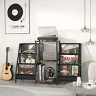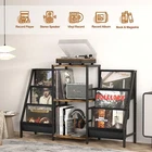 【Larger-capacity Record Player Stand】Featuring spacious 3-layer shelves and 2 vinyl display holders, the storage capacity of the record player table is double others. It offers a stylish spot to play/organize your record players, speakers, records, books, magazines, albums, media equipment and more. 【Turntable Stand with 2 Record Holder】Two stylish record display storage racks have totally 6-tier vinyl shelf storage spaces. The whole record stand can hold over 200 records. It’s convenient to find out records and provides a browsing experience that feels like you’re in a record shop. 【Top-quality Vinyl Record Storage Stand】High-end durable powder-coated metal frame to resist rust, high-quality thickened easy cleaning wooden board and high-grade oxford fabric offer stable support and ensure years of use. 【Versatile Style for Your Home Decor】The combination of vintage wood color and serene black infuses the record table with a retro vibe. When adorned with stunning and distinctive records on the vinyl display organizer, it exudes a mid century modern aesthetic, making it suitable for any style of home decoration. 【Multifunctional Record Holder Stand】Except for being a record player cabinet with vinyl storage, this vinyl storage organizer also can be used as a magazine rack, a bookshelf with display, an audio rack, a stereo cabinet, a media shelf stand, an av rack.