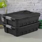 $ 27.5327 Gallon Stackable Snap Lid Plastic Storage Bin Container Black/Red Lid Set 4