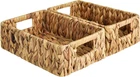 Size may vary within 1/4 inch due to handwoven design and manual measurement. Handcrafted from natural water hyacinth, clean renewable resources. Versatile woven basket for storing hand towels, toiletries in bath, or magazines, games, pet toys, media, household items. Hand woven over an iron frame for sturdy storage. Thickened built-in handles for convenient transportation. Cozy design and 100% natural.